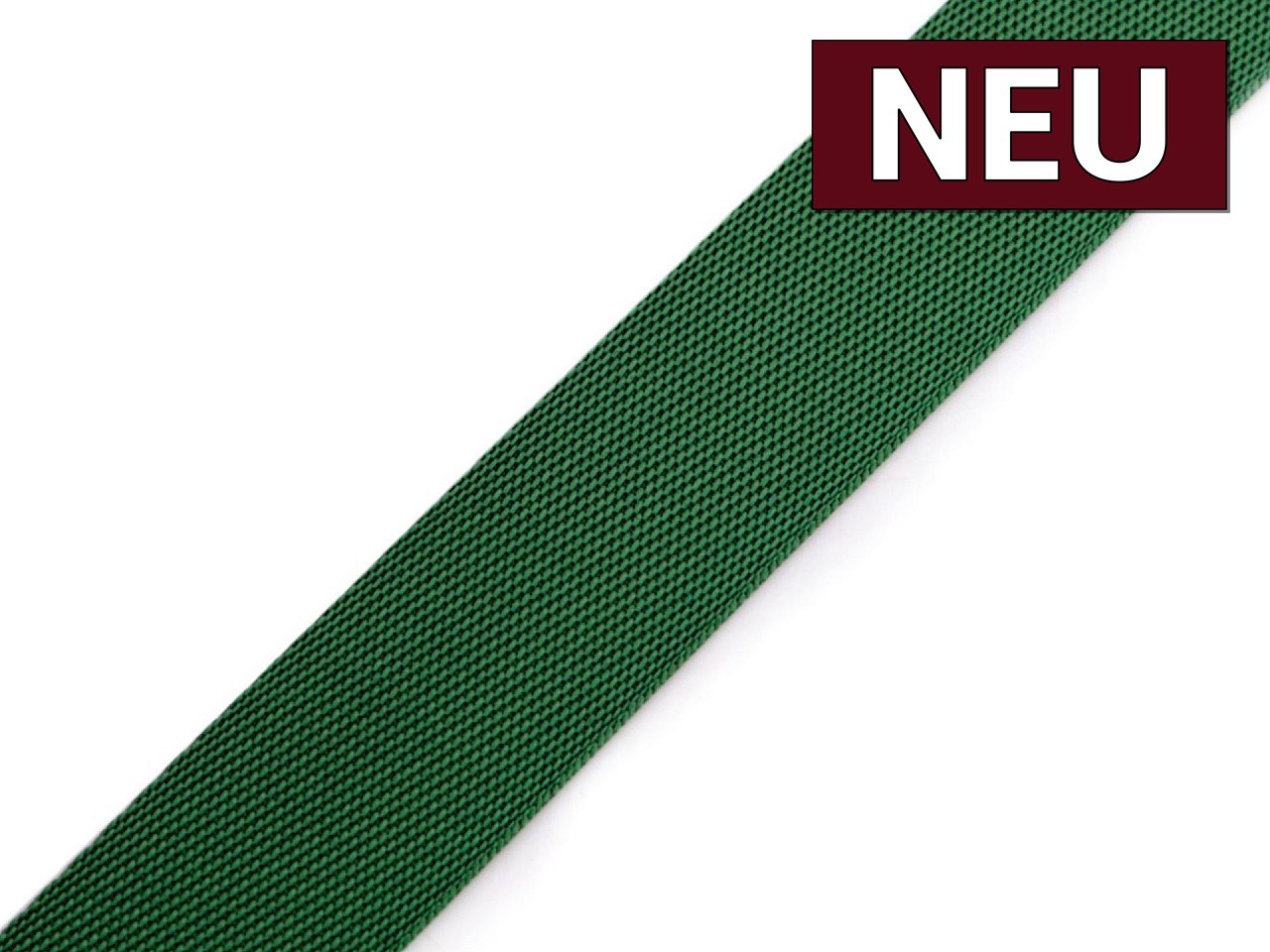 Dieses Gurtband in kräftigem Grün besticht durch seine edle Glanzoptik und die fein strukturierte Webung. Der satte Farbton wirkt modern und naturverbunden zugleich und eignet sich ideal für farbintensive, langlebige Projekte wie Taschen, Rucksäcke, Tierzubehör oder dekorative Akzente.
