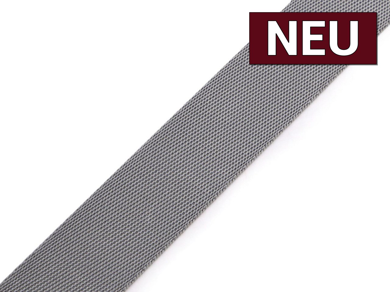 Dieses Gurtband in modernem Hellgrau besticht durch seinen dezenten Glanz und die fein strukturierte Oberfläche. Die neutrale Farbgebung wirkt klar und zeitlos, wodurch sich das Band vielseitig kombinieren und in unterschiedlichste Projekte integrieren lässt.