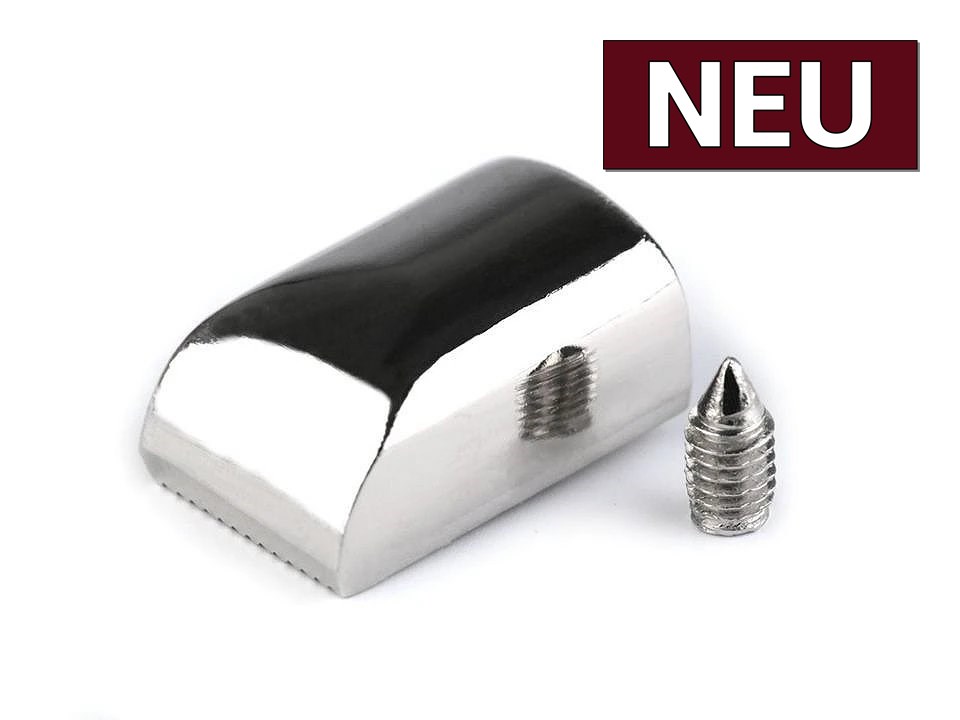 Mit dieser edlen, hochglänzenden Endkappe aus Metall können Sie einen Reißverschluss, insbesondere an Handtaschen oder Taschen, abschließen. Unschöne Enden können Sie darin verstecken und von unten festschrauben, sodass die Endkappe nicht herausfällt.