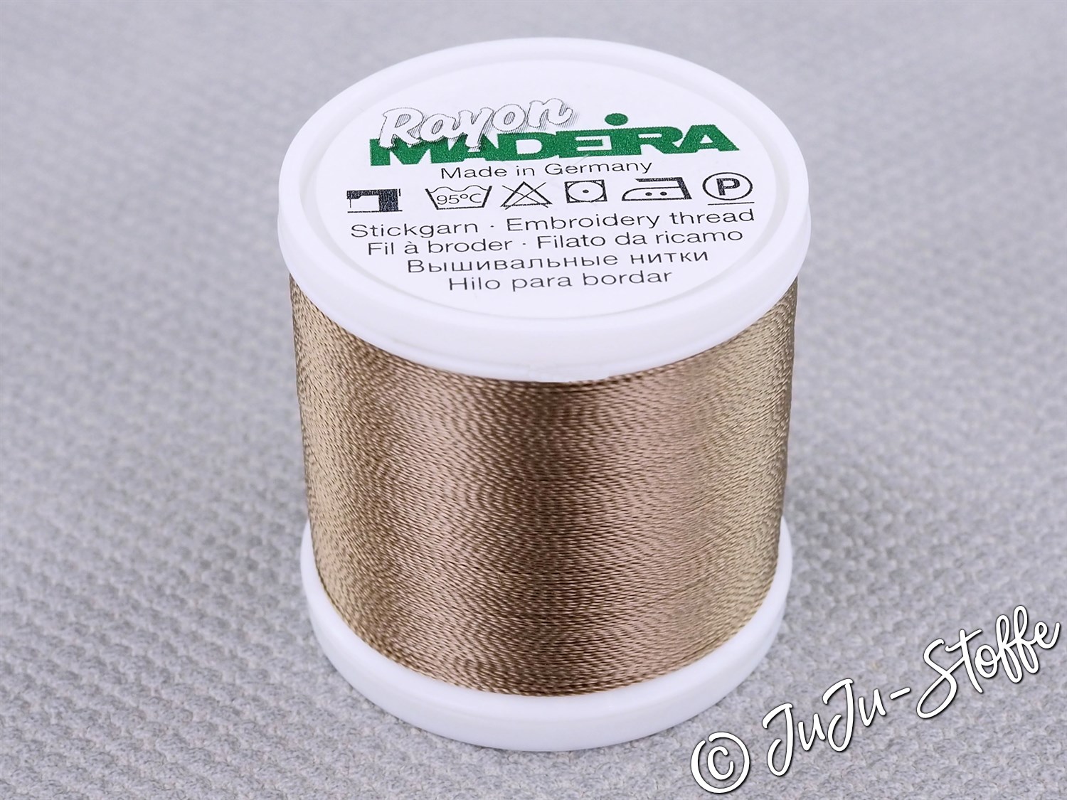Madeira Rayon Maschinenstickgarn besteht aus 100% Viskose und besticht durch seinen natürlich wirkenden, seidenähnlichen Glanz.