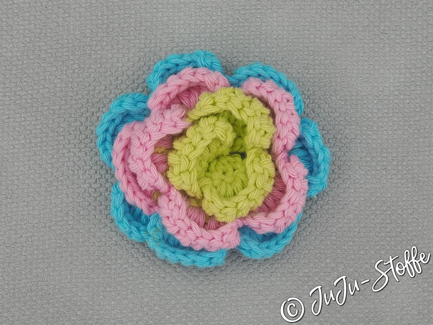 Wunderschön gehäkelte Blumen. Die dreifarbigen Blumen sind aus extraweichem Garn gehäkelt und können auf Taschen, Mützen, Kleidung und vieles mehr genäht werden.