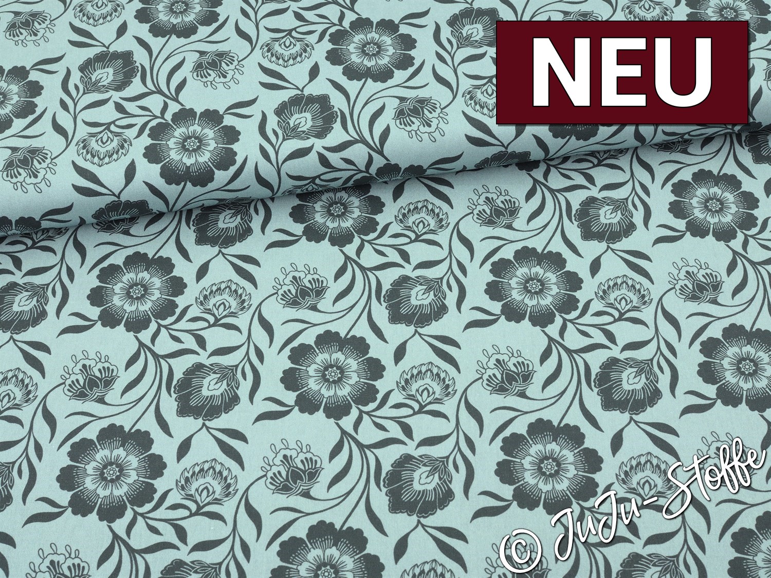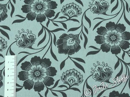 Der Stoff „Garden of Dreams“ von Claire's Creative Forest verzaubert mit einem stilvollen floralen Muster in dunklem Grau auf zartem Mintgrün. Die harmonisch geschwungenen Blüten und Blätter wirken gleichzeitig verspielt und elegant, was diesen Stoff zu einem echten Blickfang macht. Ideal für feminine Nähprojekte wie Kleider, Blusen, Accessoires oder Wohntextilien mit romantischem Flair.