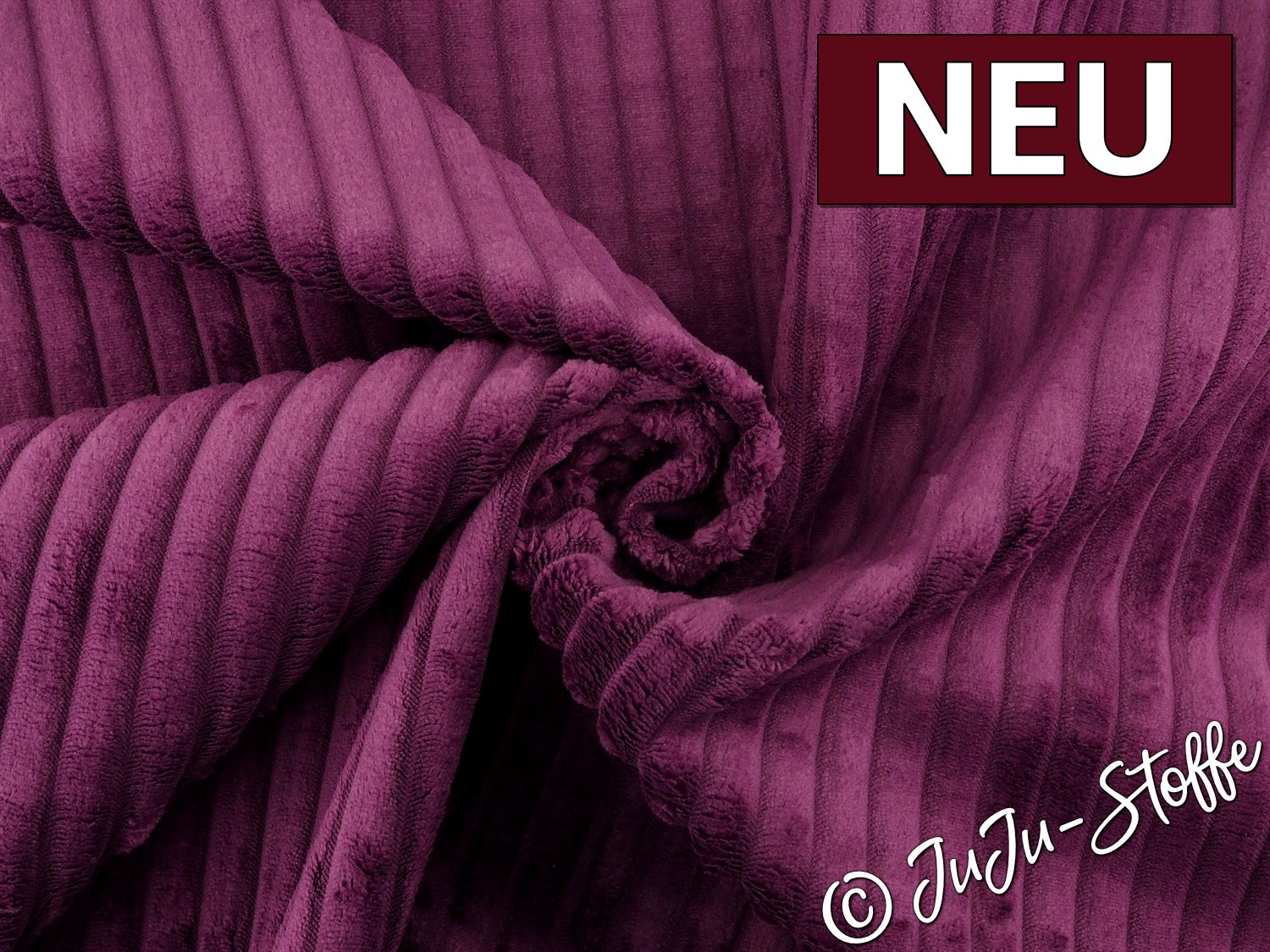 Dieser luxuriöse Breitcord XL in intensivem Aubergine begeistert mit seiner markanten, breiten Rippenstruktur und dem samtig weichen Griff. Die edle Farbgebung verleiht dem Stoff eine elegante Ausstrahlung und macht ihn zu einem Highlight für stilvolle und gemütliche Nähprojekte.