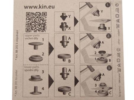 Die Druckknöpfe bestehen aus rostfreiem Metall und sind dadurch langlebig und pflegeleicht. Sie lassen sich mithilfe des beiliegenden Werkzeugs und eines Hammers einfach anbringen, können aber auch mit einer PRYM-Zange verarbeitet werden – ideal für präzise und sichere Befestigungen.