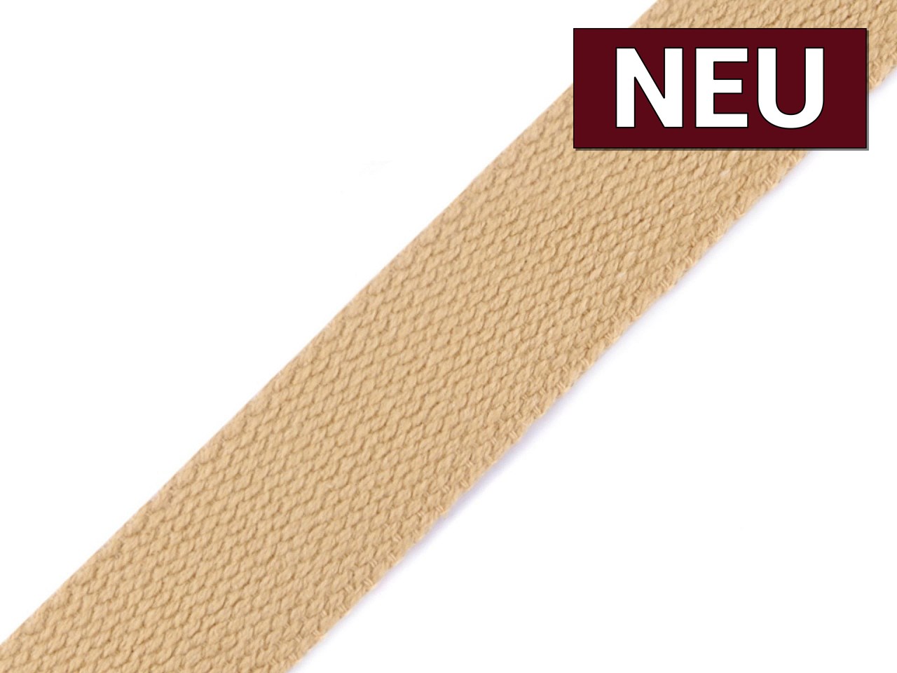 Hochwertiges Gurtband aus 100% Baumwolle. Es ist robust, aber mit weichem Griff.