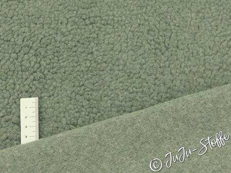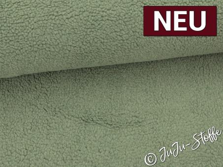 Dieser kuschelige Teddy-Stoff begeistert in einem modernen Uni-Dusty-Green. Die gleichmäßige Struktur erinnert an feines Lammfell und sorgt für eine besonders gemütliche Optik. Der sanfte Grünton wirkt zeitgemäß und lässt sich vielseitig kombinieren – perfekt für wärmende Lieblingsteile.