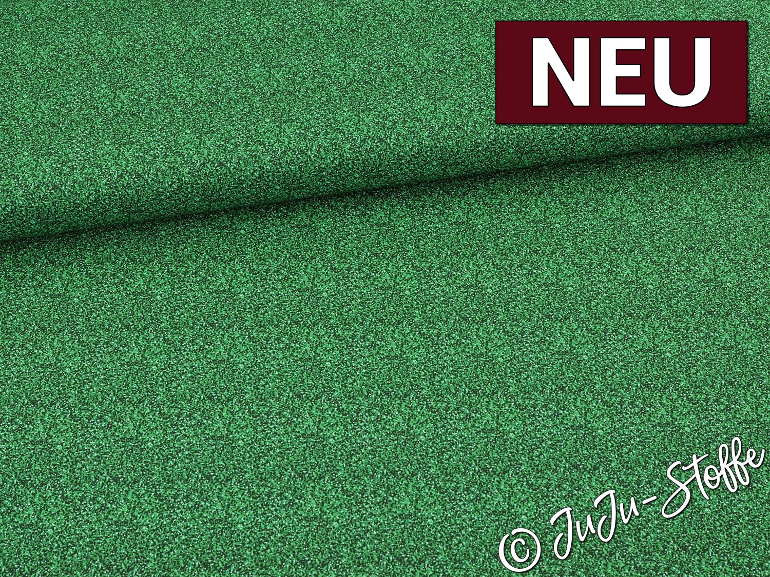 Dieser Baumwollstoff in kräftigem Grün überzeugt mit einer feinen Glitzeroptik, die der Oberfläche einen gleichmäßigen, dezenten Schimmer verleiht. Das lebendige Design wirkt frisch und hochwertig und setzt besondere Akzente bei modischen wie auch dekorativen Nähprojekten.