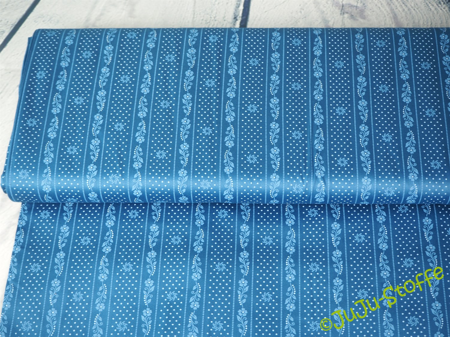 Baumwollsatin Streifen und Punkte blau Öko-Tex