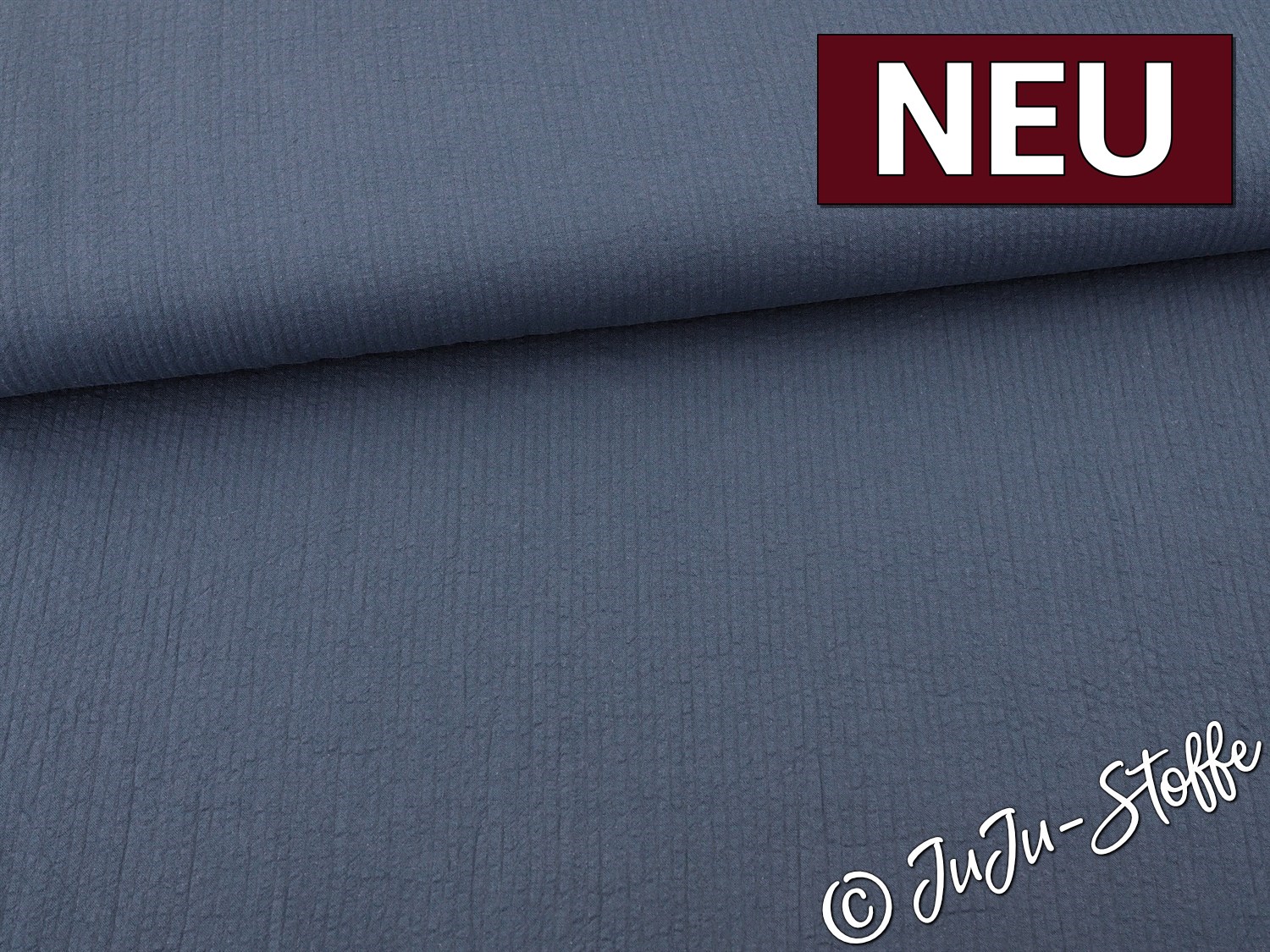 Baumwolle Seersucker uni denim Oeko-Tex®