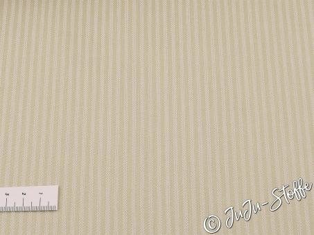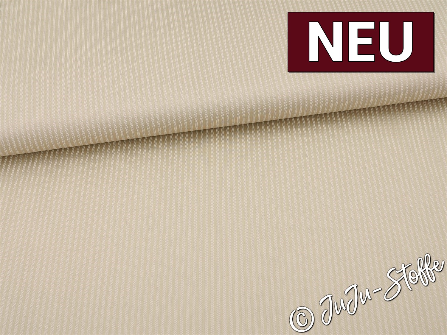 Dieser elegante Baumwollsatin präsentiert ein feines, klassisches Streifenmuster in warmem Beige. Die schmalen, regelmäßig verlaufenden Streifen wirken dezent, zeitlos und äußerst stilvoll. Durch die leicht schimmernde Satinoberfläche erhält das Design eine edle, hochwertige Ausstrahlung und eignet sich für vielseitige, geschmackvolle Nähprojekte.