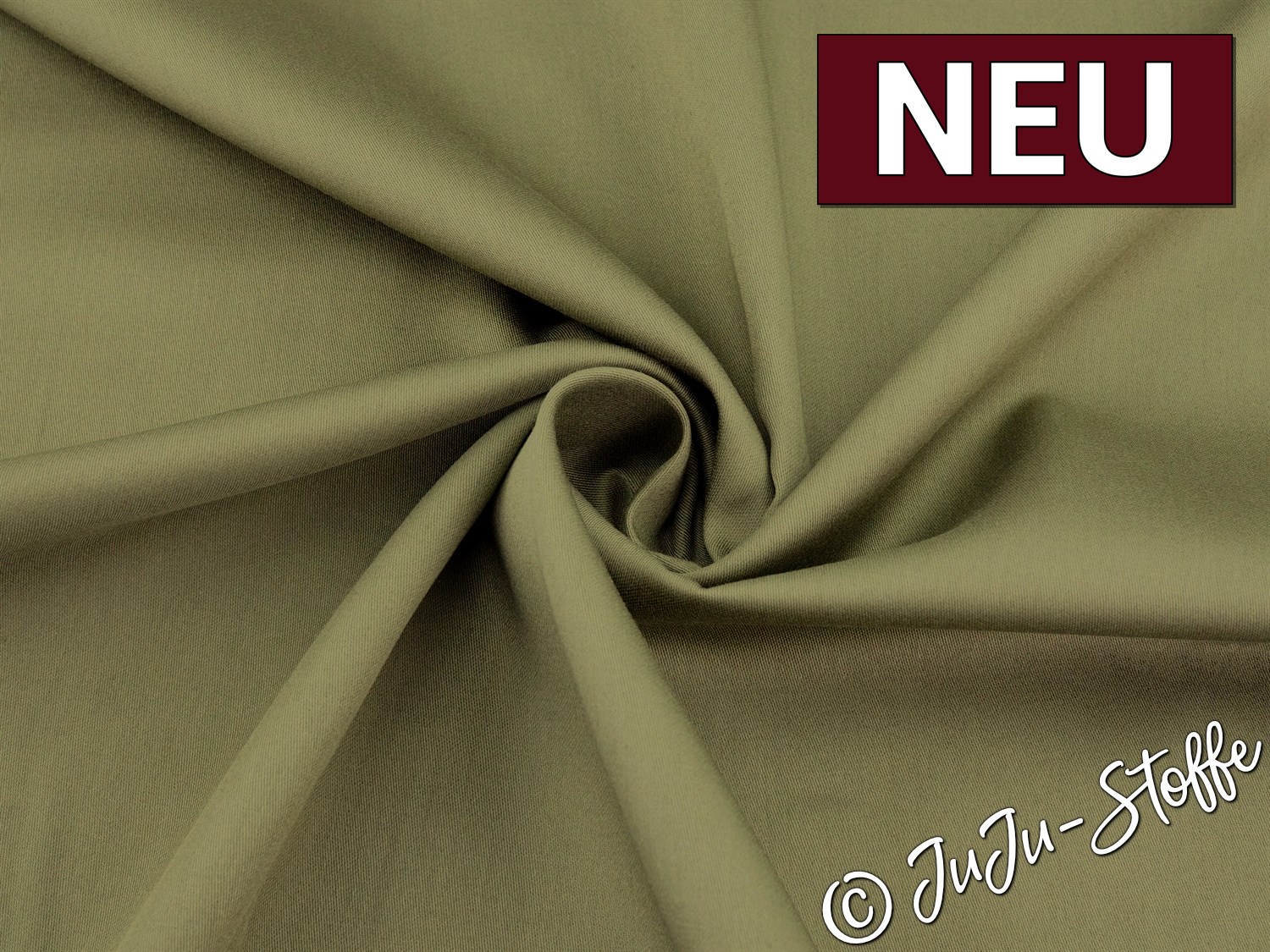 Dieser edle Baumwollsatin in modernem Army-Grün überzeugt durch seine ruhige, klare Farbwirkung und die glatt schimmernde Satinoberfläche. Der unifarbene Look wirkt zeitlos, natürlich und dennoch elegant – ideal für stilvolle Kleidung und hochwertige Nähprojekte.