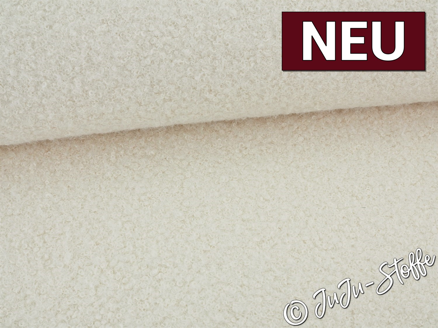 Dieser Bouclé-Stoff in elegantem Cremeton begeistert durch seine charakteristische, unregelmäßige Schlingenstruktur, die dem Material eine besonders weiche, voluminöse und zugleich moderne Optik verleiht. Die feinen Schlaufen erzeugen eine lebendige Oberfläche und machen den Stoff ideal für zeitgemäße Mode- und Wohntextilien.