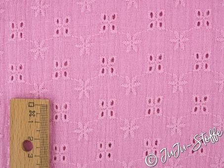 Weicher Musselin mit wunderschöner Lochstickerei. Der Stoff ist aus reiner Baumwolle und besteht aus zwei Lagen. Das macht ihn sehr weich und luftig.