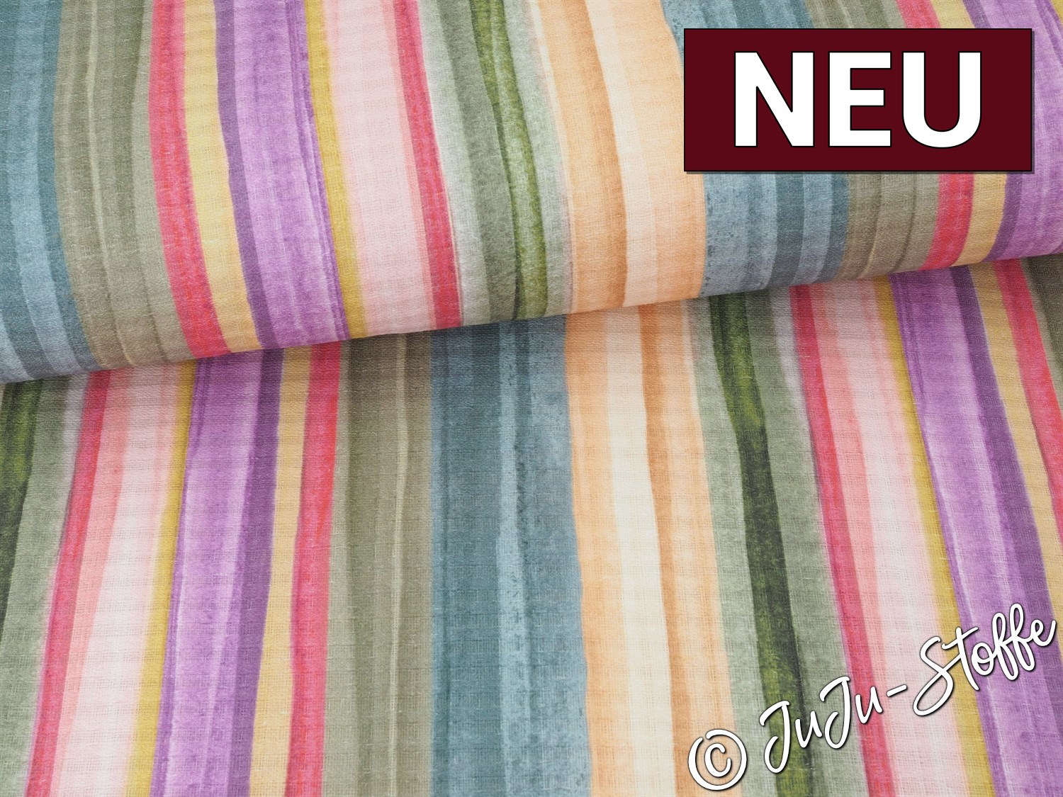 Dieser farbenfrohe Musselinstoff zeigt ein harmonisches Streifendesign in sanft verlaufenden Pastell- und Naturtönen. Die abwechslungsreichen Farbnuancen von Rosa, Gelb, Grün, Blau und Violett wirken lebendig und zugleich angenehm weich. Die leicht gecrinkelte Oberfläche unterstreicht den natürlichen Charakter des Stoffes und verleiht ihm eine besonders textile Tiefe.