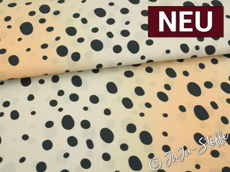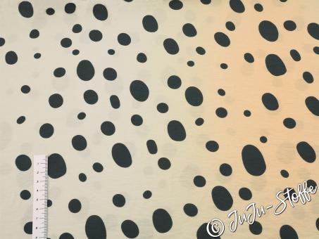 Ein verspielter Klassiker im modernen Look: Dieser Stoff zeigt ein lebhaftes Punktemuster in Schwarz auf einem zarten, hellen Untergrund. Die unterschiedlich großen Punkte sind unregelmäßig verteilt und sorgen für eine lebendige, dynamische Optik. Ideal geeignet für fließende Blusen, luftige Kleider oder stylische Accessoires mit Hingucker-Garantie.