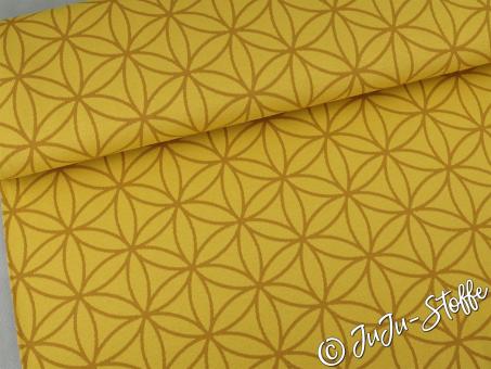 Bio-Strickjacquard Blume des Lebens gelb von Stoffonkel GOTS